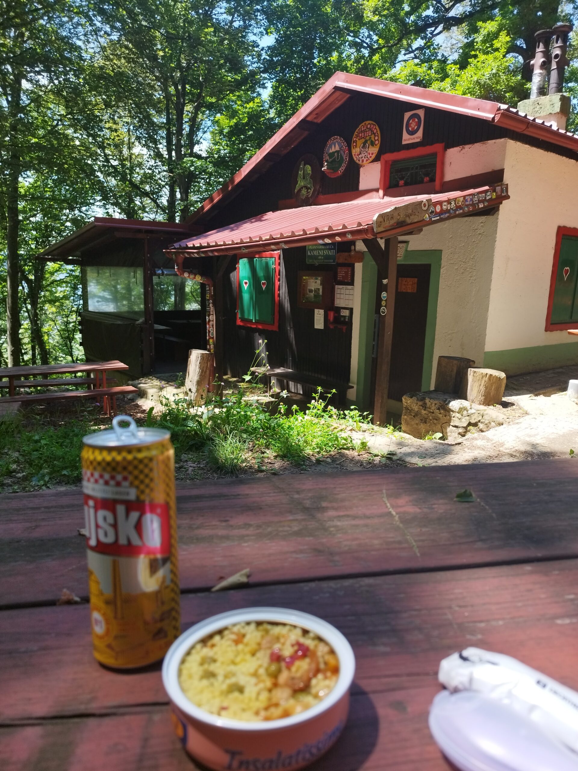 Put do planinarske kuće Kameni svati je razmjerno strm pa preporučam korištenje planinarskih štapova, osobito zbog blata. Od početka do pl. kuće stiže se nakon 45 min i savladava 255 m nadmorske visine u 2,5 km. To je staza broj 7 i ja je volim koristiti za brzinsko solo planinarenje ili trening. Planinarska kuća Kameni svati je otvorena samo nedjeljom, a nudi osvježenje u obliku čaja, soka, hidre, pive, gemišta i sl., dok s hranom nije opskrbljena Plaćanje je simbolično, tj. kao donacija (uvijek podržite plan. kuće i domove narudžbama). Jako je slatka i ugodna s puno klupa vani i velikom peći unutra. Također, pored nje se nalazi i pečeranja/roštilj s obiljem drva i slobodna je za korištenje. Jedino imajte na pameti da do kuće ne vodi cesta, pa je hranu/piće potrebno nositi na leđima.
