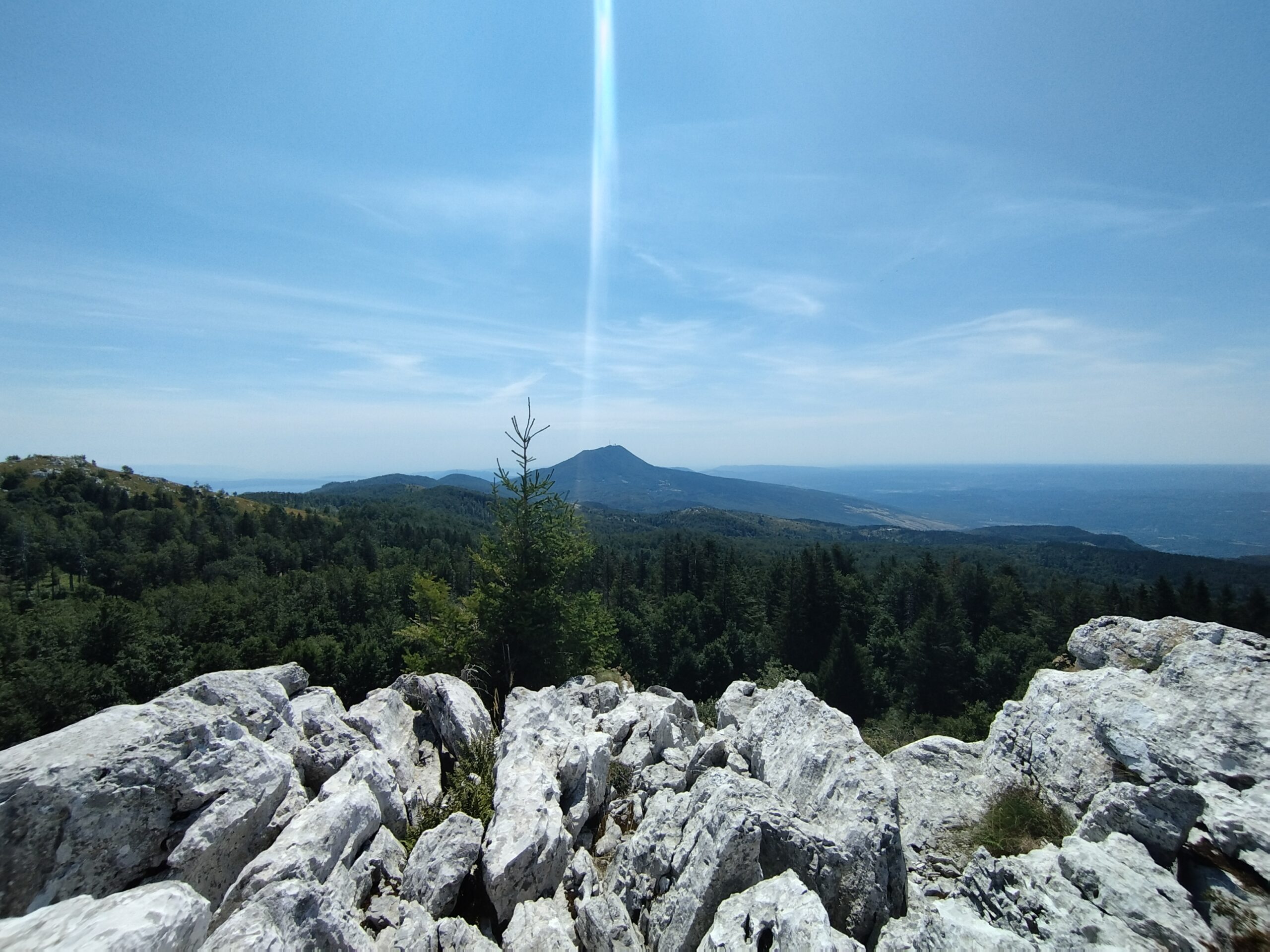 Laganom stazom do najvišeg vrha V. Planik stigli smo za manje od 2 h. Jedan dio staze zapravo je makadamska cesta i prolazi kroz šumu, pa je pogodna za ljetno planinarenje. Strmiji dio je zadnjih 10-ak min prije vrha, gdje je križanje više plan. staza, na sedlu između V. Planika i Malog Planika. S vrha se pružaju vidici prema Učki, Hrvatskom primorju i Gorskom Kotaru. Vrh je travnato stjenovit sa crvenom metalnom kutijom s upisnom knjigom i žigom za HPO. Veliki Planik je prvi vrh ove kružne ture.