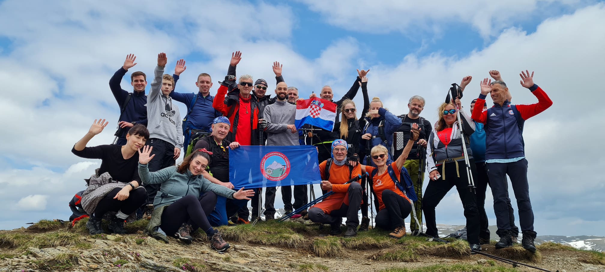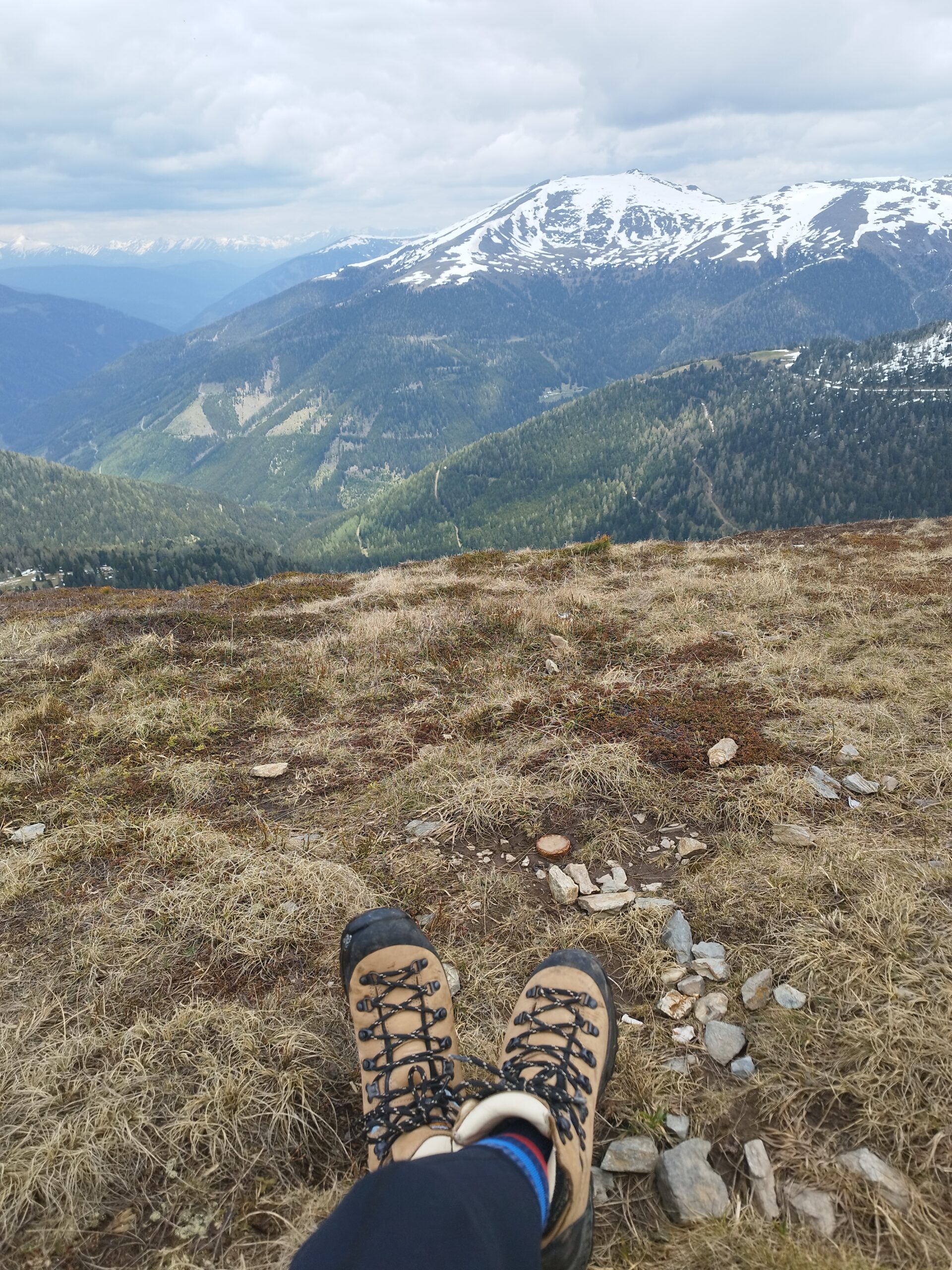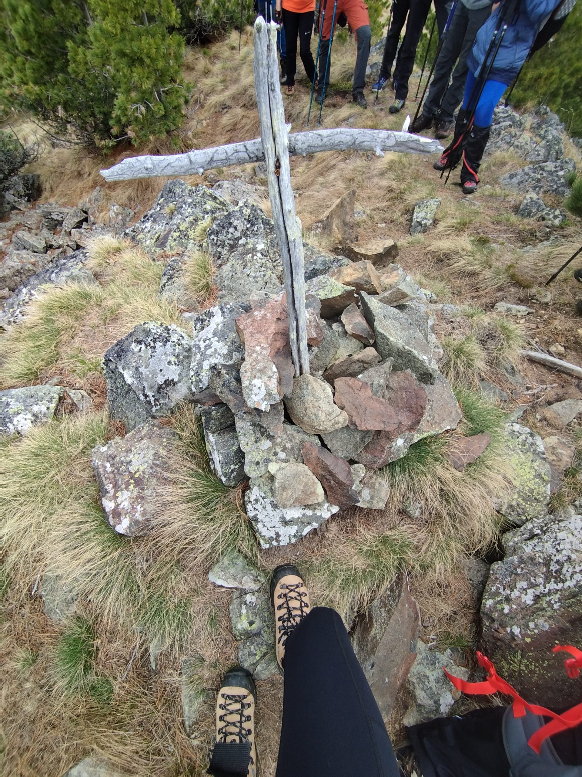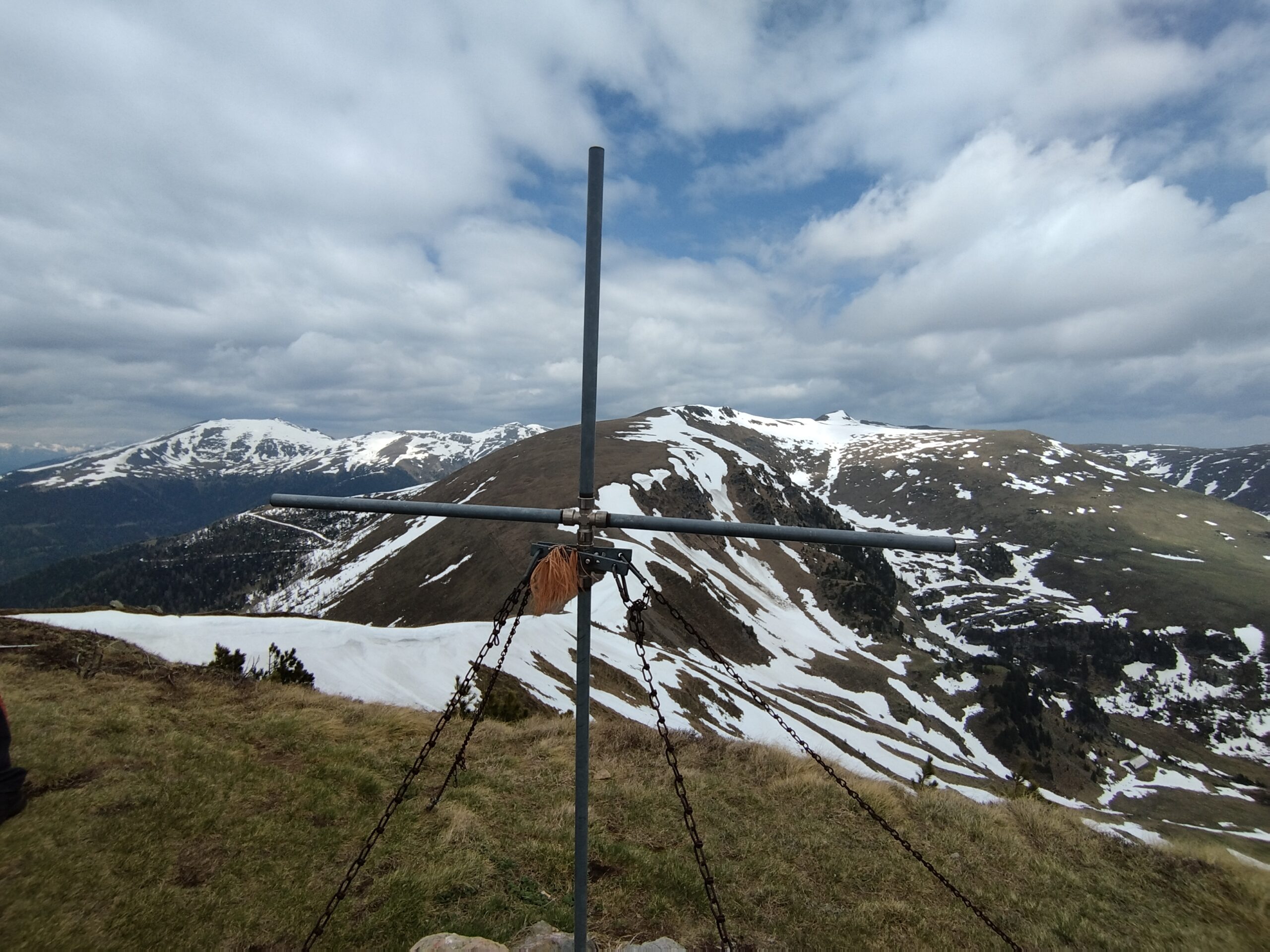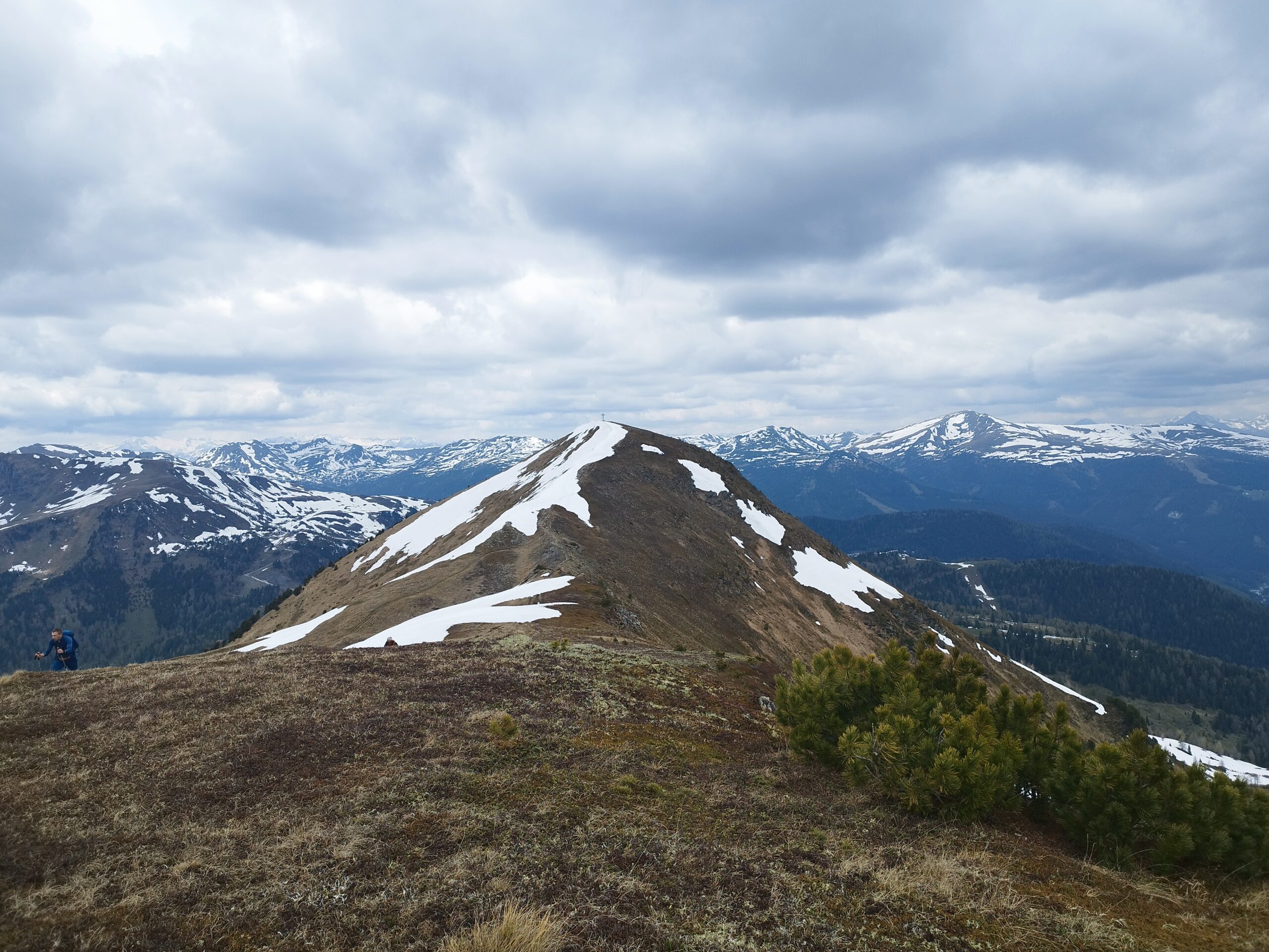 Na vrh smo stigli brzo, mislim da već nakon 1 h. Po putu smo malo izgubili put jer markacije nisu najnovije, a ugaženo tlo se nije vidjelo zbog snijega. Svako malo bismo napravili vrlo kratku stanku da dođemo do predaha pa dalje. Planinarsko društvo je šaroliko po dobi, pa treba misliti na sve. U jednom trenu se pokazao Rinsennock u daljini, rekli smo neki sljedeći put. Svi smo imali osmjehe na licu kada smo izdaleka ugledali križ. Križ je ogroman i metalan s  natpisom “vjera, nada, ljubav”. Na vrhu je bila prva veća pauza, za pojesti, popiti, uslikati se i upijati okolinu. Puhao je vjetar, sunce se pokazivalo na trenutke. Svejedno nas je većina izgorila u licu. I tako nam je Schoberriegel 2208m n.v. bio prvi vrh tog dana. Ali ima li što bolje od više vrhova u jednom danu? Sljedeći susjedni, nešto viši je Gruft 2232m n.v. On je pak označen malim mršavim križem. Ova dva vrha međusobno su udaljena 15-20 min. I dalje smo pazili na mokar i težak snijeg koji se zadržao na sjevernoj strani padine.